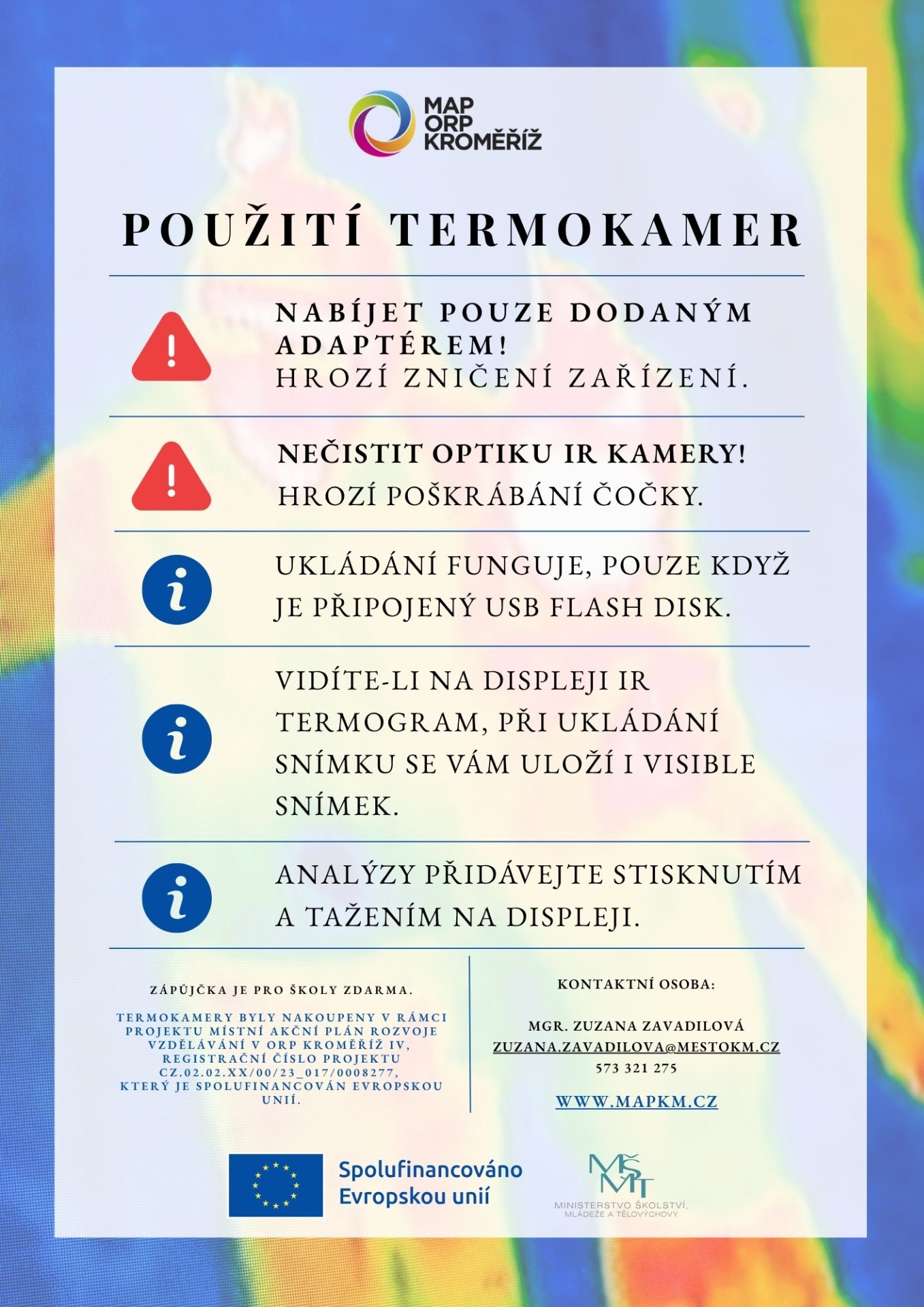 Termokamery byly nakoupeny v rámci projektu Místní akční plán rozvoje vzdělávání v ORP Kroměříž IV, registrační číslo projektu CZ.02.02.XX/00/23_017/0008277, který je spolufinancován Evropskou unií.